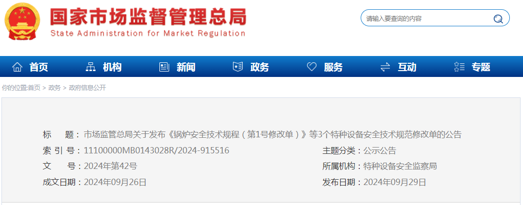 市场监管总局关于发布《锅炉安全技术规程(第1号修改单)》等3个特种设备安全技术规范修改单的公告