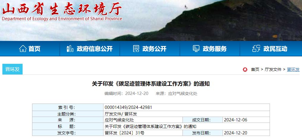 为贯彻落实生态环境部等15部门《关于印发<关于建立碳足迹管理体系的实施方案>的通知》(环气候〔2024〕30 号),加快建立我省碳足迹管理体系,促进产业链和供应链绿色低碳发展,推动新质生产力发展,助力实现碳达峰碳中和目标,省生态环境厅会同省发展改革委、省工信厅、省财政厅、省人社厅、省住建厅、省交通厅、省商务厅、人民银行山西省分行、省国资委、太原海关、省市场监管局、山西金融监管局、山西证监局、省能源局、省数据局制定了《碳足迹管理体系建设工作方案》。现印发给你们,请认真抓好落实。山西省人力资源和社会保障厅 山西省住房和城乡建设厅2024 年 12 月 6 日